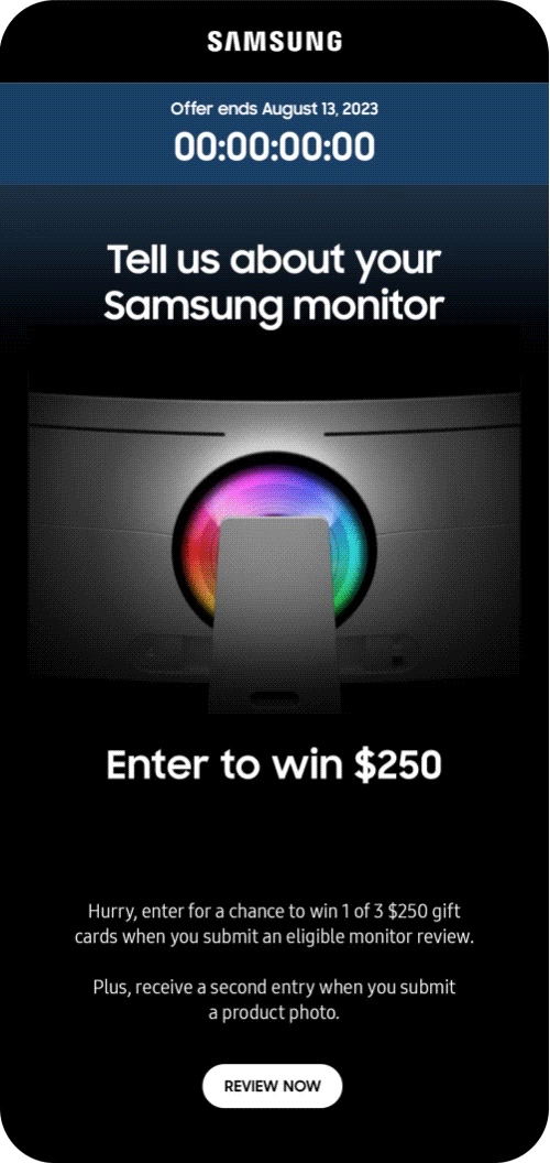 Samsung - leave a review and win promotional emails