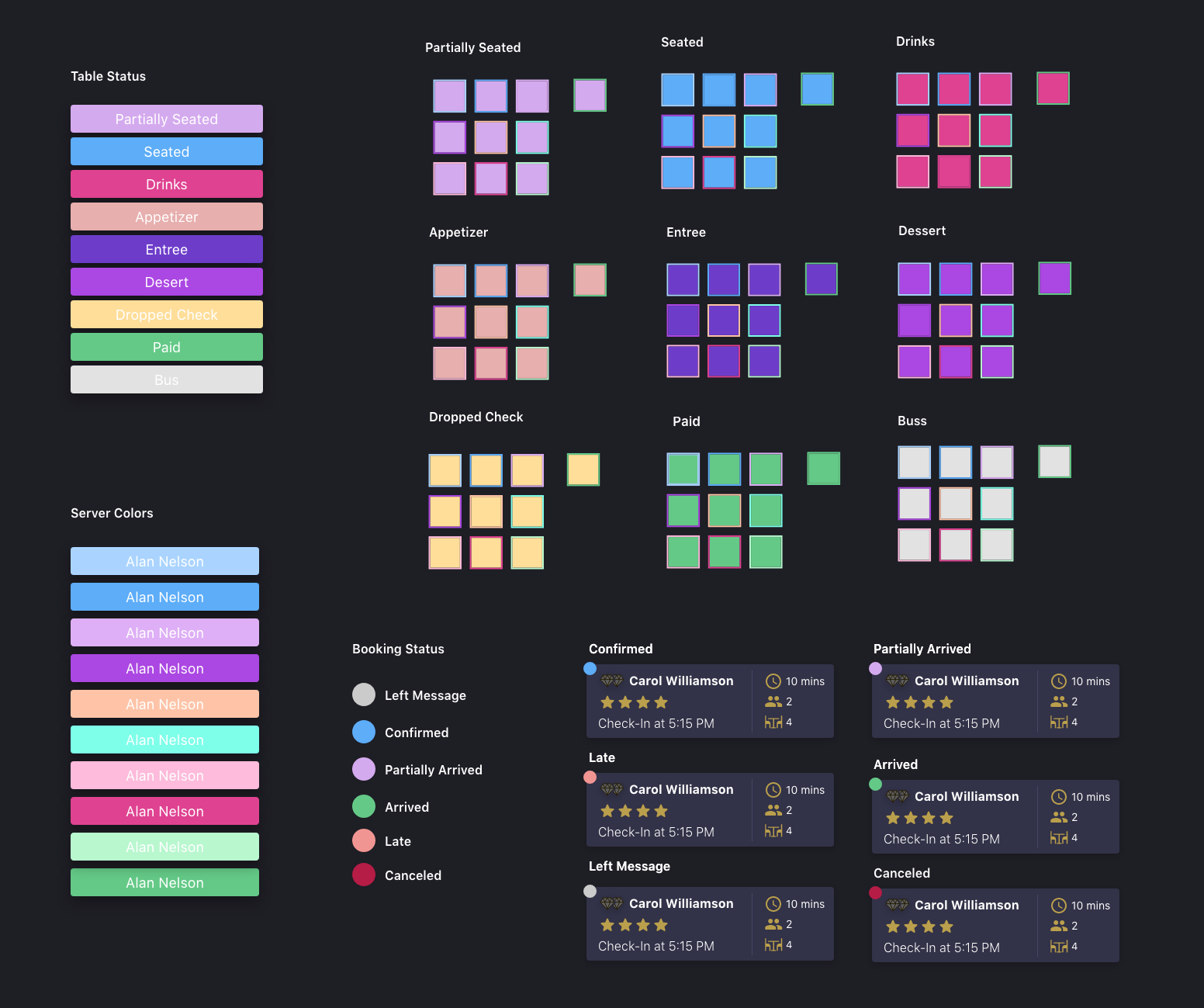 Working color guide for seating statuses