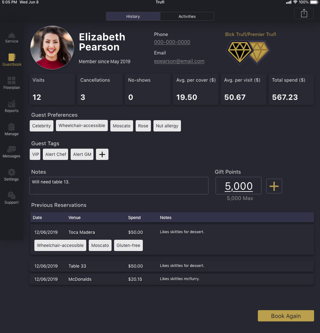 A few of the interactions available in the Trufl restaurant app